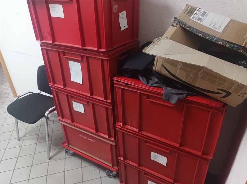 | Beschreibung | 7 x Kunststoffkisten mit Deckel, Inhalt: neue Arbeitskleidung |