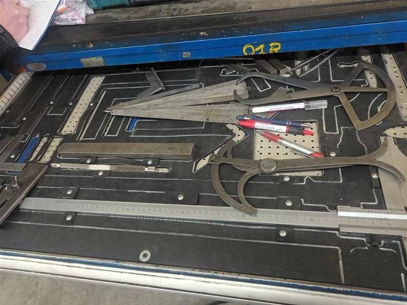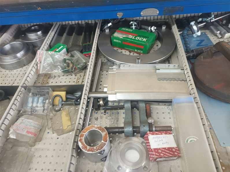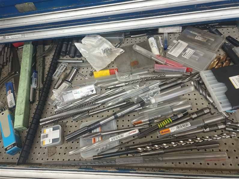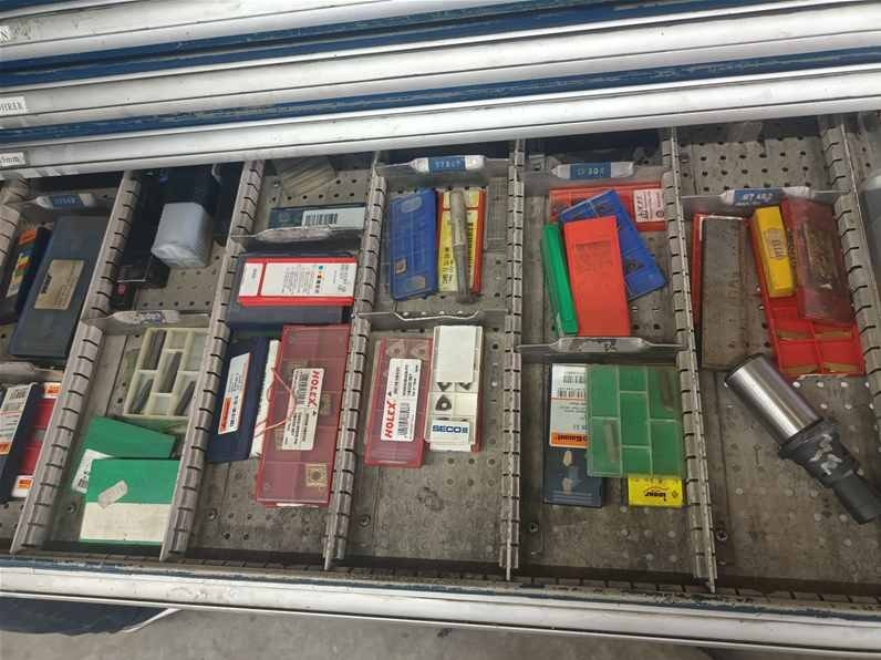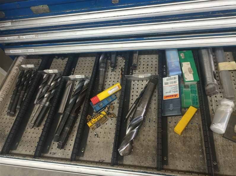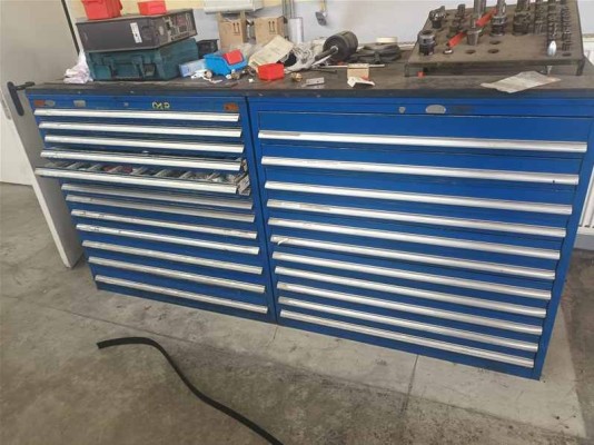 | Beschreibung | 2 x Teleskopschubladenschrank, 11 Schübe, blau Inhalt: Messmittel, Bohrer, Windeisen, Reibahle, Wendeschneidplatten |